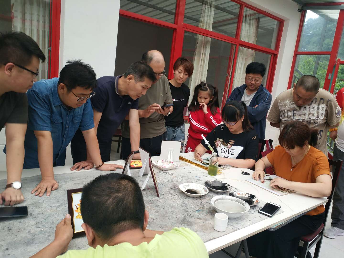 2018年6月17日,天津圣澤大通書畫院著名指畫名家王忠林、花鳥畫家尹寶華、書法家寧厚圃、書法家周征、山水畫家李學龍、書法家黃可鑫、花鳥畫家李旭等諸位老師應邀來興隆參加鄭氏砂藝工會委員會主辦的文化藝術交流活動。興隆縣鄭氏砂藝美術協(xié)會主席鄭鐵軍,興隆縣美術協(xié)會戴鐵松和韓鳳山全程參加了交流活動。