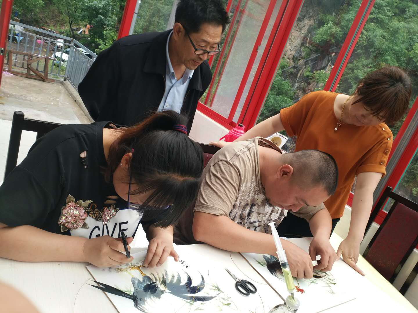 天津圣澤大通書畫院的老師們學習砂畫制作