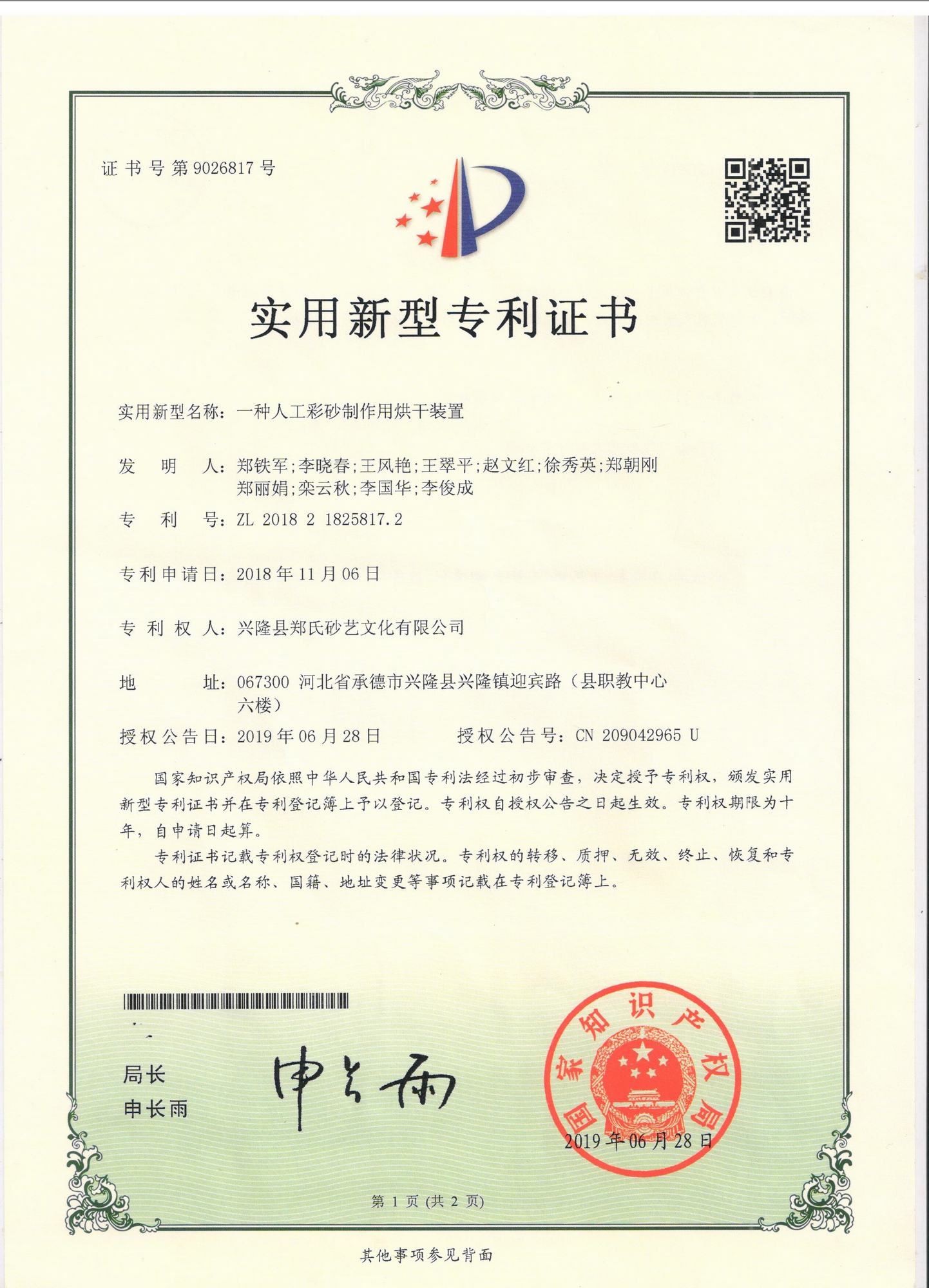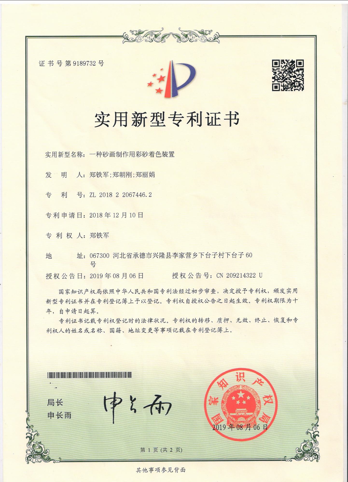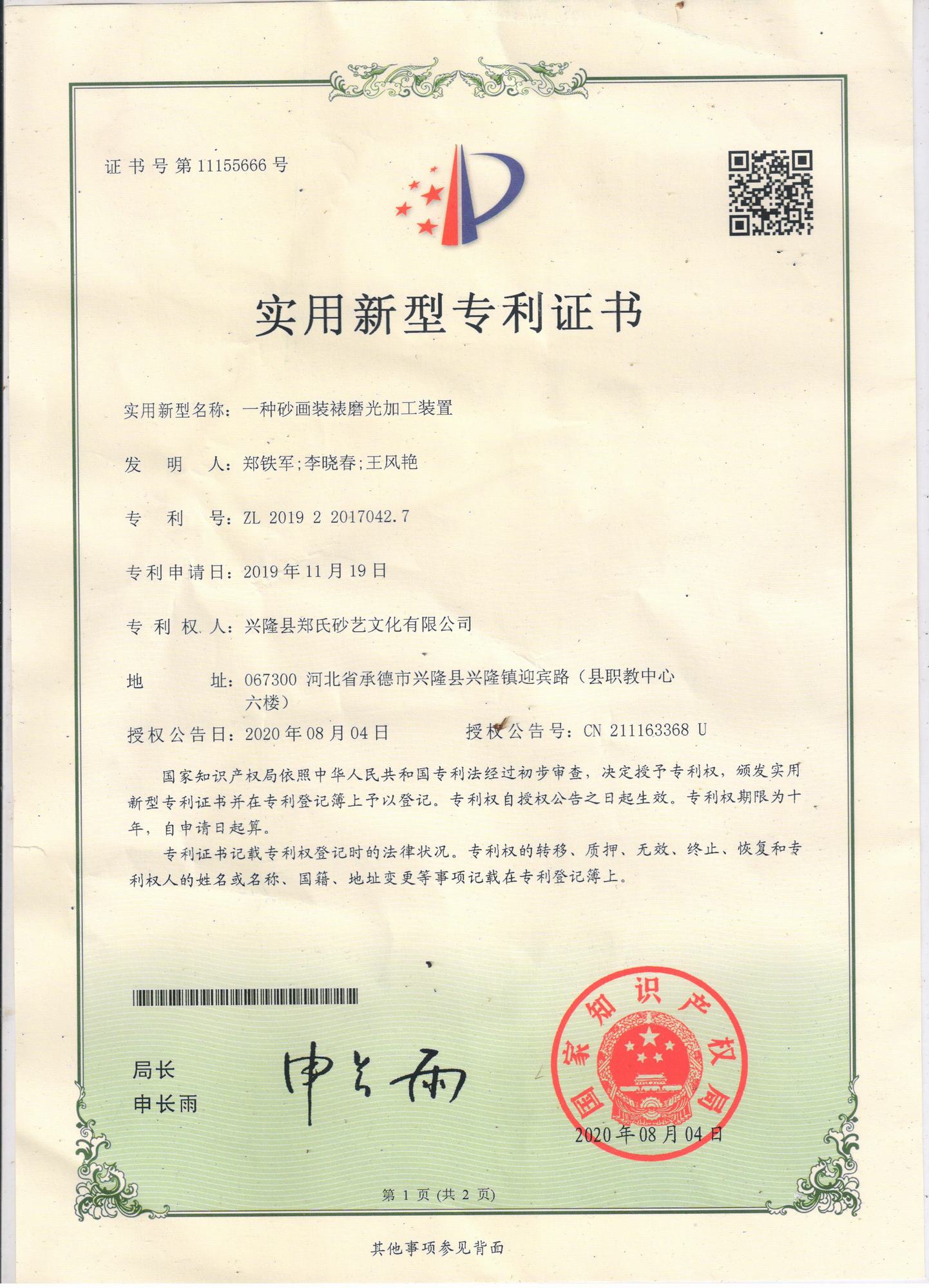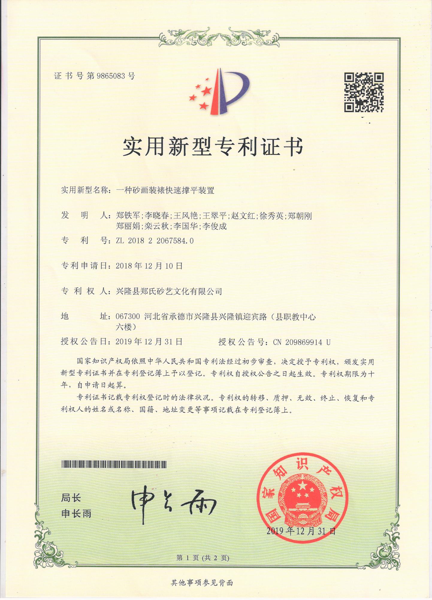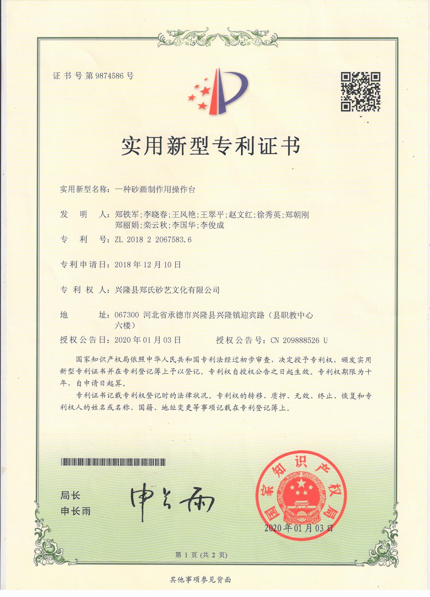 自鄭氏砂藝研究所成立以來(lái),經(jīng)過研發(fā)人員的不懈鉆研和努力,已經(jīng)陸續(xù)研發(fā)和申報(bào)了9項(xiàng)擁有自主知識(shí)產(chǎn)權(quán)的實(shí)用新型專利,目前為止9項(xiàng)專利全部獲得國(guó)家知識(shí)產(chǎn)權(quán)局的認(rèn)定。近年來(lái),公司根據(jù)自身的生產(chǎn)需求,積極成立了鄭氏砂藝研究所并獲得省工業(yè)和信息化廳批準(zhǔn),在研發(fā)過程中,公司先后投入數(shù)十萬(wàn)元,通過研發(fā)破解了生產(chǎn)過程中的技術(shù)難題,9項(xiàng)自主研發(fā)專利的成功也標(biāo)志著鄭氏砂藝研究所逐步走向成熟。