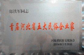 2014年3月30日,河北省民俗文化協(xié)會(huì)成立十周年大會(huì)在河北正定舉行。鄭氏砂藝有限公司董事長兼總經(jīng)理鄭鐵軍被評為《首屆河北省五大民俗企業(yè)家》。砂畫作品《八駿圖》被評為《圣基杯河北省工藝美術(shù)創(chuàng)新作品五佳之一》。