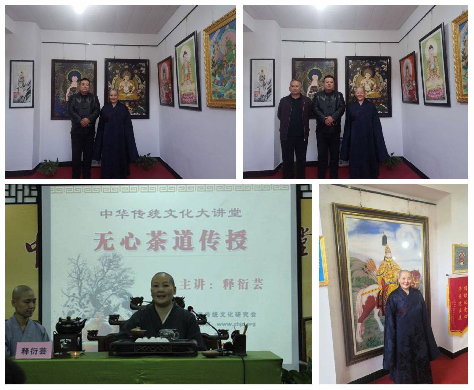 10月13日。興隆縣鄭氏砂藝文化有限公司董事長(zhǎng)鄭鐵軍在公司會(huì)見了原縣民族宗教事務(wù)局局長(zhǎng)蔣學(xué)金率領(lǐng)的興隆縣隆蕓寺住持、禪茶研修班導(dǎo)師、國(guó)際茶藝師釋衍蕓法師等一行。并引導(dǎo)衍蕓法師,觀賞了公司美輪美奐的砂藝作品。釋衍蕓法師為金剛薩埵等十幾幅佛教作品進(jìn)行了灑凈。通過灑凈更加增強(qiáng)了砂藝作品的靈感性和親和力。釋衍蕓法師,90年代遍訪諸山茗茶,研習(xí)各派茶藝,精通各類茶泡制與品鑒,后將禪學(xué)融入茶事,開創(chuàng)“無心禪茶”,借茶修心,益人無數(shù)。釋衍蕓法師是禪茶研修班導(dǎo)師,國(guó)際茶藝師,曾多次受邀代表中國(guó)到馬來西亞、法國(guó)等歐亞國(guó)家參加國(guó)際茶藝、茶道表演、研討與交流;現(xiàn)受聘于湖北陸羽(茶圣)紀(jì)念館名譽(yù)館長(zhǎng)。在佛教界和茶道界享有很高名望。
