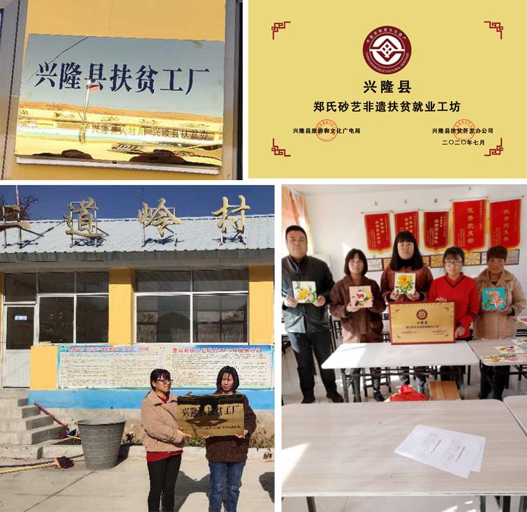 2020年11月6日。由興隆縣人力資源和社會保障局、縣扶貧辦頒發(fā)的“興隆縣扶貧工廠”、興隆縣旅游和文化廣電局、興隆縣扶貧開發(fā)辦公室,頒發(fā)的“興隆縣鄭氏砂藝非遺扶貧就業(yè)工坊”,在蘑菇峪鎮(zhèn)二道嶺村正式掛牌營業(yè)。標志著該村扶貧就業(yè)工坊步入正規(guī)化、規(guī)范化軌道。興隆縣就業(yè)局張新主任、鄭氏砂藝文化有限公司董事長鄭鐵軍、蘑菇峪鎮(zhèn)包村干部以及村干部等出席掛牌儀式。