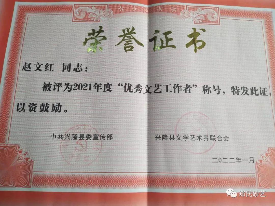 近日,縣委宣傳部、縣文聯(lián)發(fā)表了《關(guān)于表彰2021年度優(yōu)秀文藝家協(xié)會(huì)、優(yōu)秀村級(jí)文聯(lián)、優(yōu)秀企業(yè)文聯(lián)、優(yōu)秀文藝工作者的決定》,文中指出“2021年,在縣委、縣政政府的堅(jiān)強(qiáng)領(lǐng)導(dǎo)下,在市文聯(lián)的直接指導(dǎo)下,全縣廣大文藝工作者,深入學(xué)習(xí)貫徹黨的十九大和習(xí)近平文藝座談會(huì)上的講話精神,在‘鄉(xiāng)村振興黨旗紅·文藝創(chuàng)新樹(shù)先鋒’和‘文藝名村’建設(shè)實(shí)踐活動(dòng)中,辛勤耕耘,積極創(chuàng)作,服務(wù)人民,為繁榮全縣文藝事業(yè)做出了積極貢獻(xiàn),涌現(xiàn)出了一大批表現(xiàn)突出、成績(jī)優(yōu)異的文藝工作者。”在此次通報(bào)表彰中,鄭氏砂藝董事長(zhǎng)鄭鐵軍、徐書英、王鳳艷、趙文紅、張國(guó)新、王建寶、張玉紅、張秀榮、王婷共9人被縣委宣傳部和縣文聯(lián)授予2021年度“優(yōu)秀文藝工作者”稱號(hào)。企業(yè)將繼續(xù)開(kāi)拓創(chuàng)新,潛心創(chuàng)作,努力發(fā)掘出更多文藝人才,壯大鄭氏砂藝藝術(shù)研究所,創(chuàng)作出更多文藝精品,為推進(jìn)新時(shí)代興隆縣文藝事業(yè)繁榮發(fā)展作出新的更大貢獻(xiàn)。