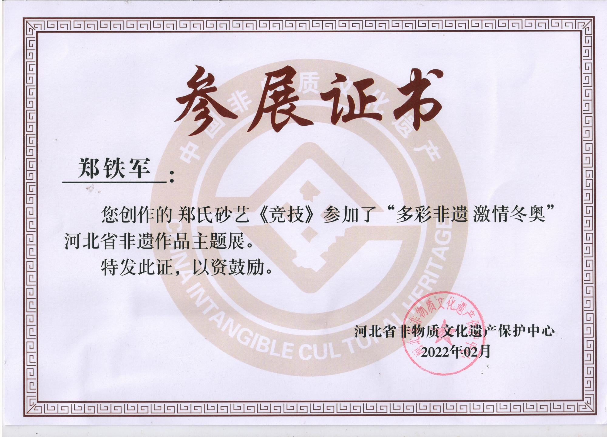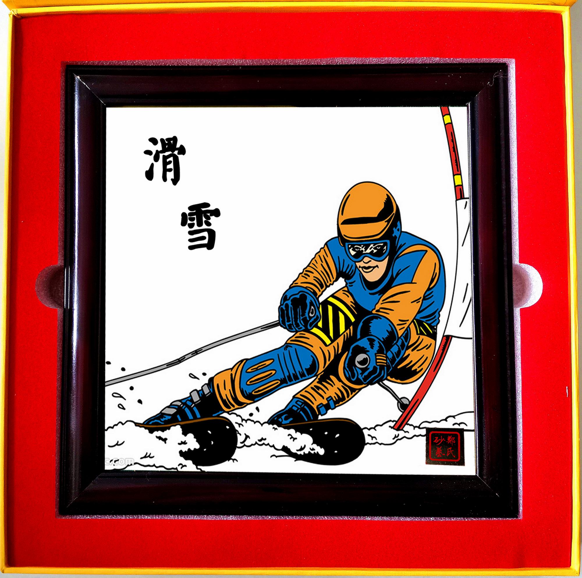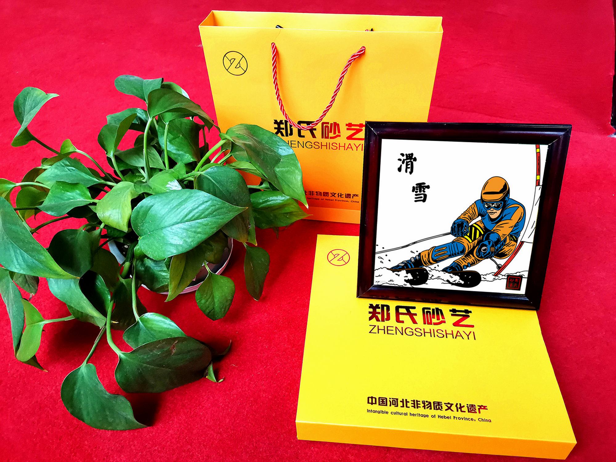 2022年北京冬奧會(huì)是我國重大歷史節(jié)點(diǎn)的重大標(biāo)志性活動(dòng),也是河北省推動(dòng)京津冀協(xié)同發(fā)展、雄安新區(qū)規(guī)劃建設(shè)、冬奧會(huì)籌辦“三件大事”之一。因此省群眾藝術(shù)館(省非遺保護(hù)中心)按照河北省文化和旅游廳的部署在全省開展了“多彩非遺激情冬奧”非遺主題作品征集活動(dòng),本次作品以冬奧文化、冰雪文化、春節(jié)文化為題材,通過藝術(shù)展現(xiàn)冰雪運(yùn)動(dòng),應(yīng)邀鄭氏砂藝執(zhí)行董事國際工藝美術(shù)大師鄭鐵軍創(chuàng)作的砂畫作品《滑雪》、《競技》兩幅作品參展,并被省群眾藝術(shù)館和省非物質(zhì)文化遺產(chǎn)保護(hù)中心永久收藏。