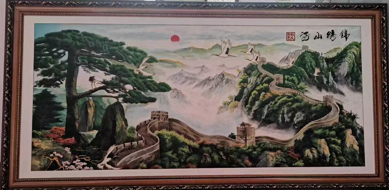 整幅畫以高山、長城、云霧、旭日、大雁、迎客松以及巧妙的畫技呈現(xiàn)了祖國大好河山的壯麗景色。,畫中山情水勢(shì),脈落分明,虛實(shí)并舉,映帶盤旋,具有"神而不盡"的詩情畫意。所以這幅《錦繡山河》是會(huì)議室、辦公室和居家裝飾的最佳裝飾品!是鎮(zhèn)宅納財(cái)之靈寶,具有極高的觀賞和收藏多重價(jià)值!