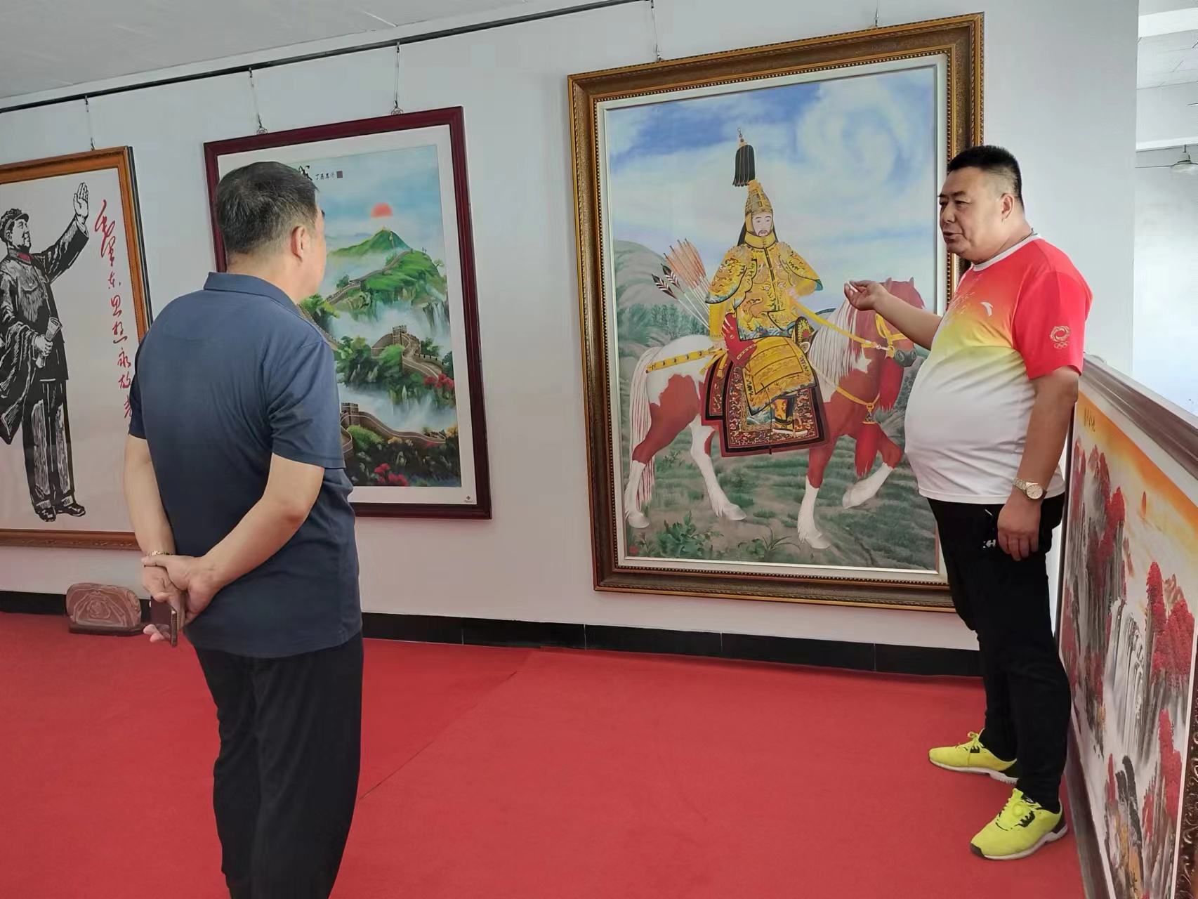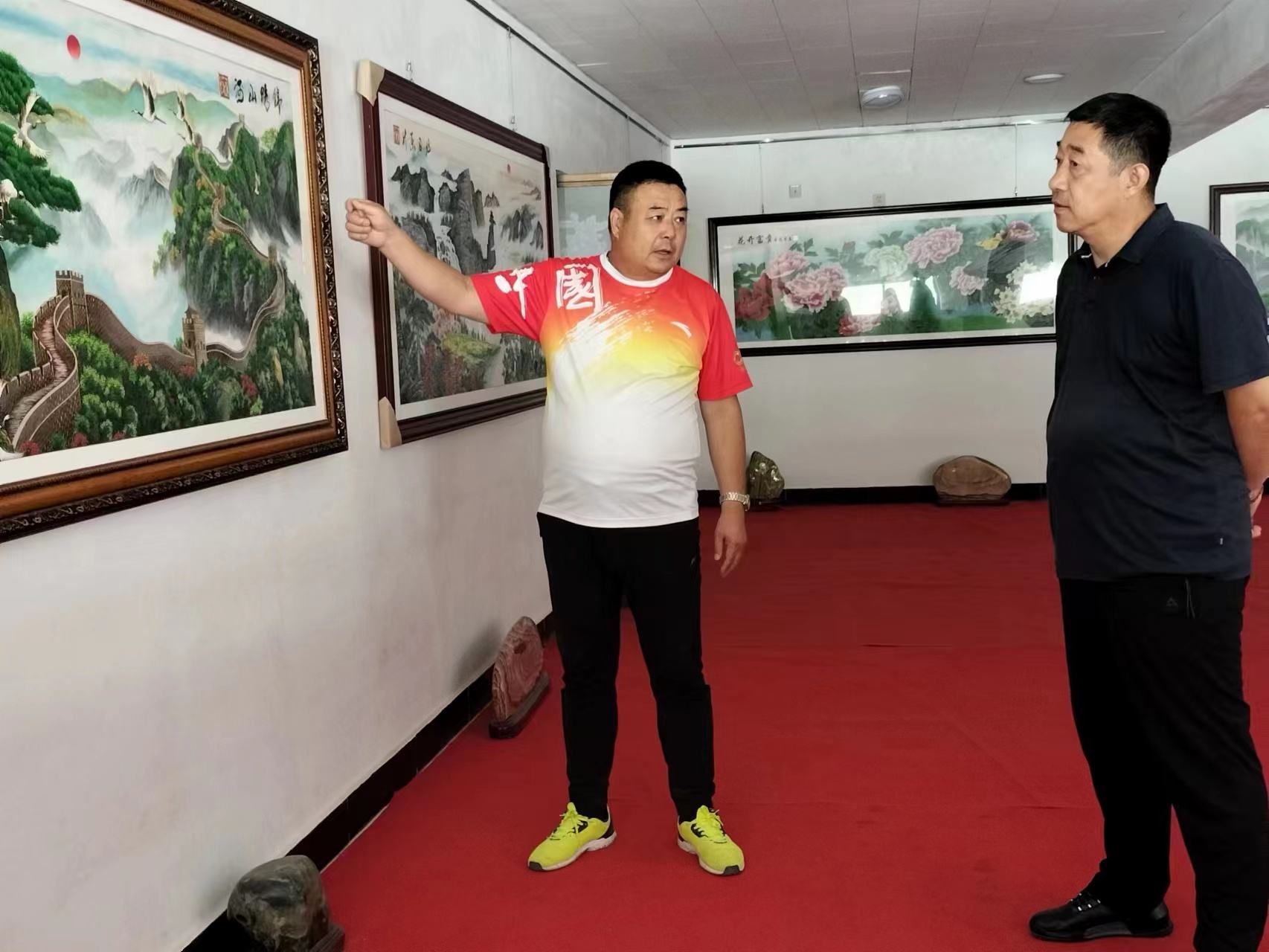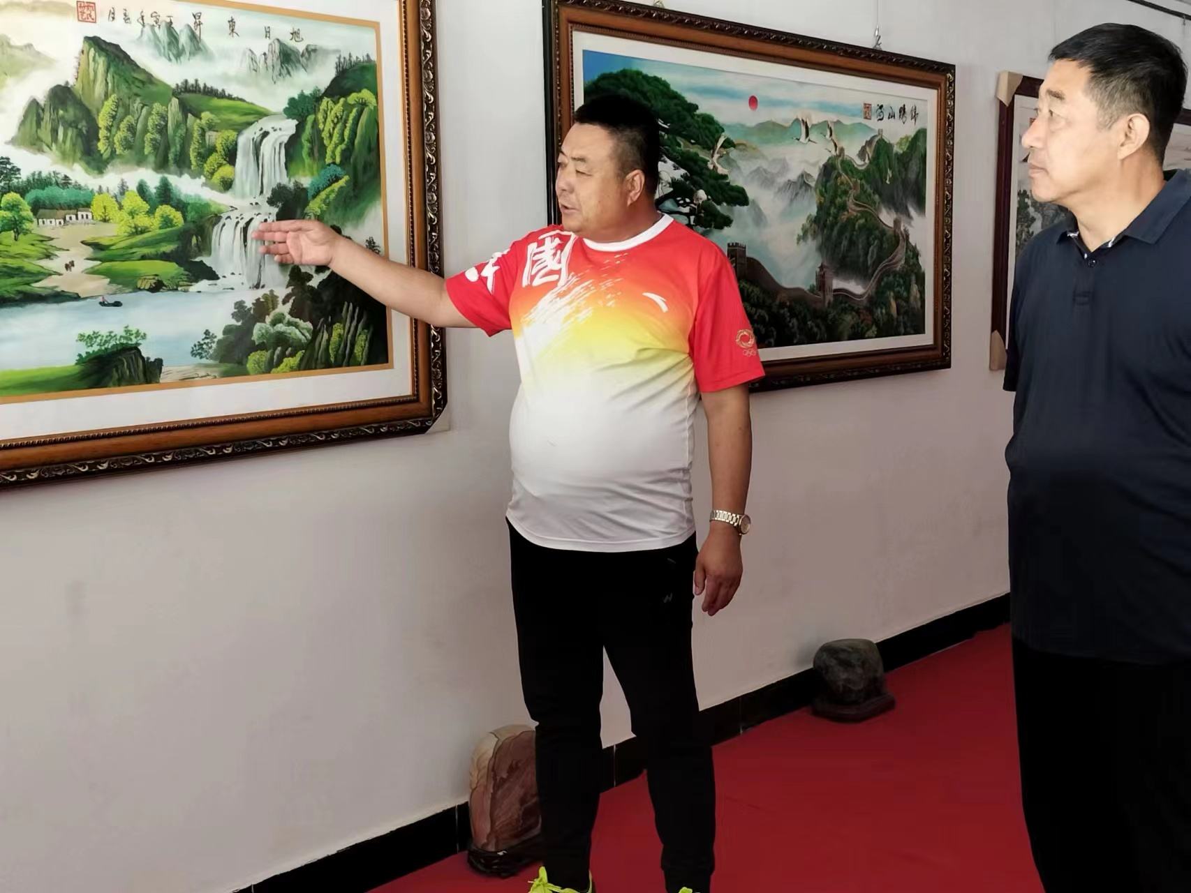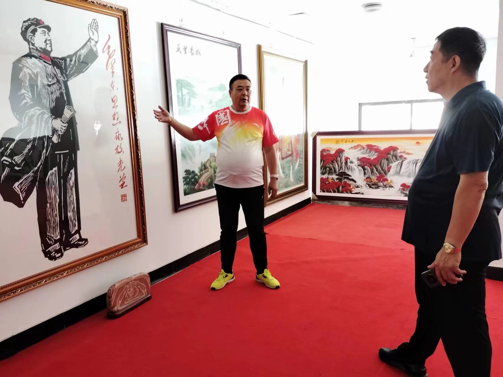 王智慧經(jīng)理等人在鄭總的陪同下參觀了砂畫制作車間和鄭氏砂藝非遺文化展館,參觀過(guò)程中,鄭總對(duì)鄭氏砂藝(畫)的發(fā)展歷程、制作流程、企業(yè)榮譽(yù)和發(fā)展前景做了簡(jiǎn)單介紹。同時(shí)鄭總就企業(yè)代表性砂畫及其制作時(shí)采用的材料及背后的歷史文化進(jìn)行了簡(jiǎn)略描述。