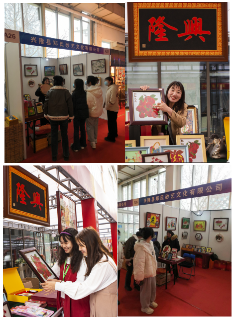 本屆特博會(huì)的主題為“文化引領(lǐng)創(chuàng)新,產(chǎn)業(yè)融合融通”,重點(diǎn)是推介河北省文旅產(chǎn)業(yè)項(xiàng)目和特色文化產(chǎn)品,鄭氏砂藝位于特博會(huì)非遺文化展區(qū),展出包含砂畫系列、水晶砂畫系列、砂畫梳妝鏡系列、山楂砂畫系列等非遺砂畫作品及砂畫文創(chuàng)作品60余件。琳瑯滿目的砂畫藝術(shù)品吸引了眾多前來(lái)參觀的客戶和展商,并對(duì)鄭氏砂藝展出的作品贊不絕口。