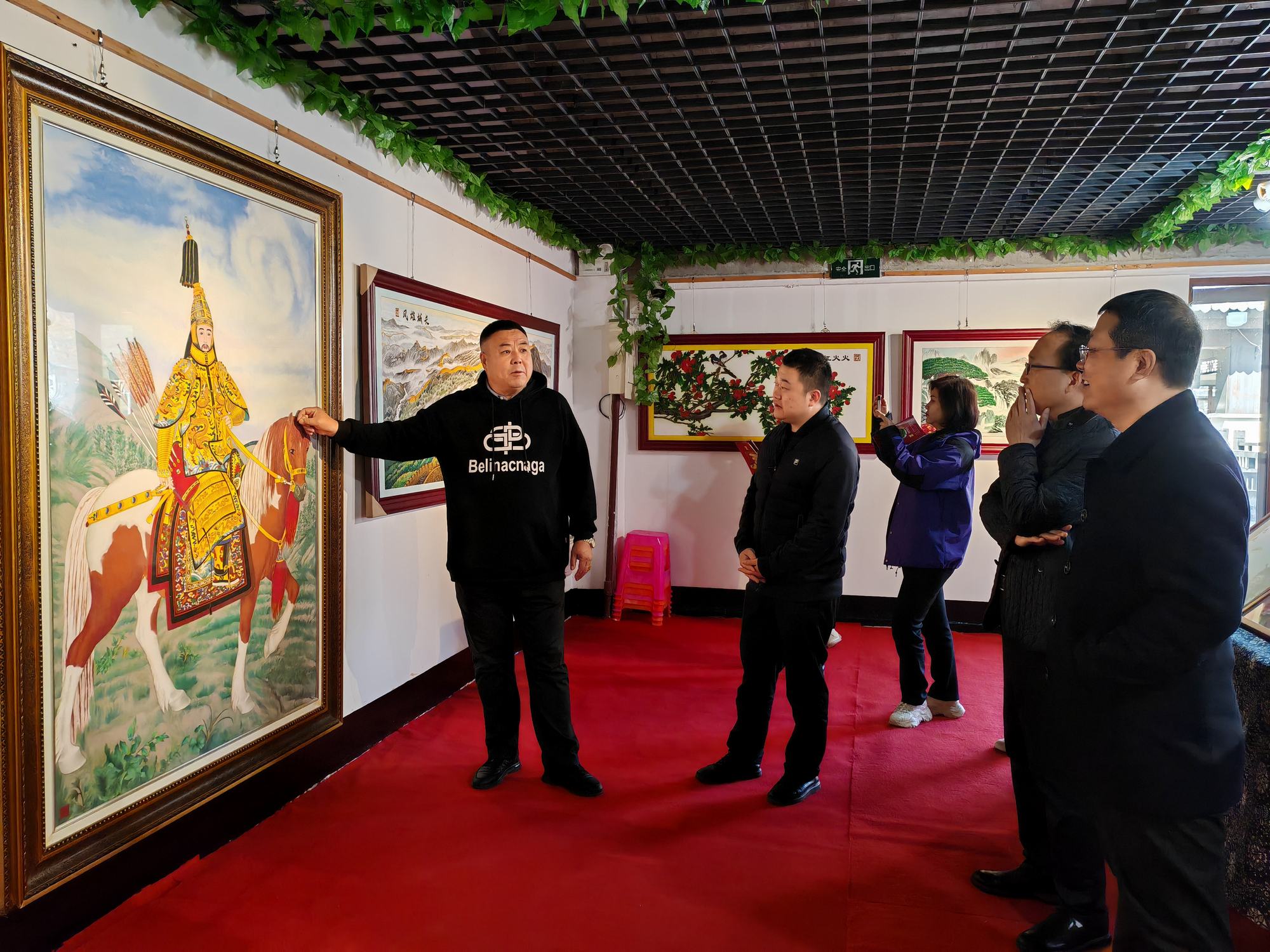 集乾釗主任一行在鄭鐵軍董事長的陪同下參觀了鄭氏砂藝非遺展館,觀看了鄭氏砂藝創(chuàng)作的各類非遺砂畫作品,考察團領(lǐng)導(dǎo)在長城砂畫系列前駐足欣賞,對栩栩如生的長城砂畫作品給予了高度贊譽。期間董事長鄭鐵軍對近年來鄭氏砂藝非遺文化的發(fā)展情況進(jìn)行了簡單介紹。集乾釗主任對鄭氏砂藝非遺文化的傳承和發(fā)展表示了充分肯定,并對鄭氏砂藝的傳統(tǒng)手工技藝給予高度評價。