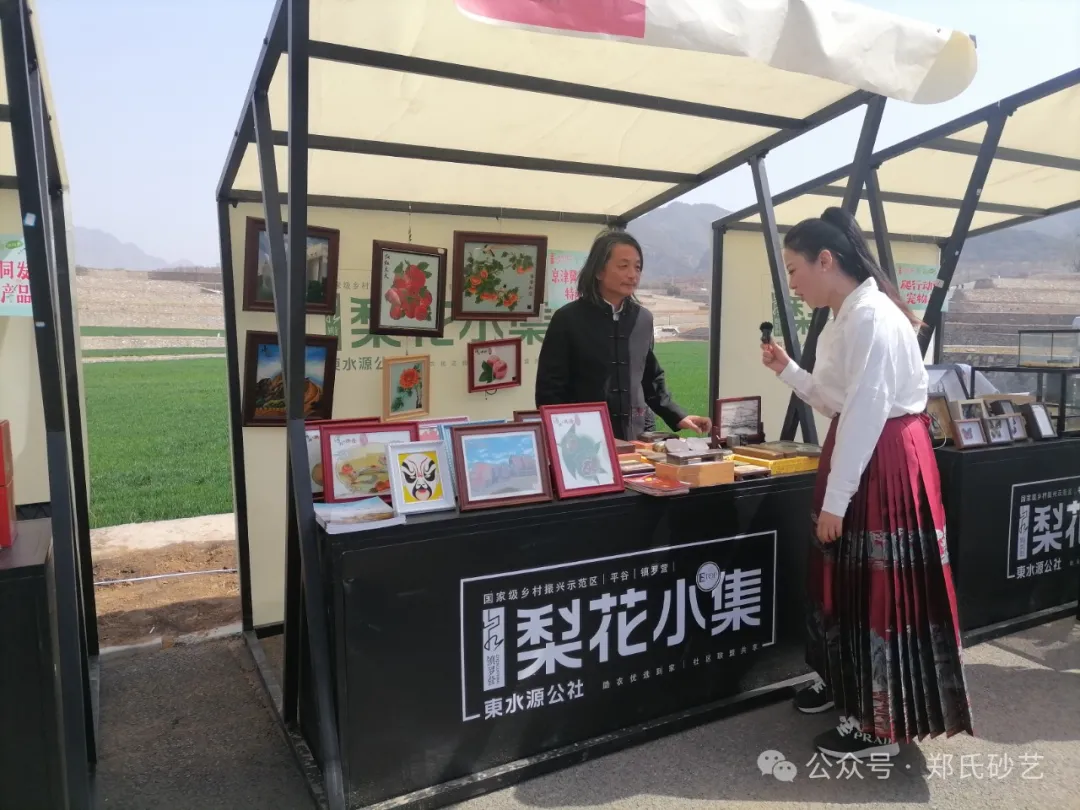 “忽如一夜春風來,千樹萬樹梨花開” 春風正好,花開有期。2024年4月8日上午,北京市平谷區(qū)鎮(zhèn)羅營鎮(zhèn)人民政府舉辦的以“千載梨花頌、花漾鎮(zhèn)羅營”為主題的梨花谷雨文化節(jié)活動拉開帷幕,為營造“傳統(tǒng)文化+梨花美景”的活動氛圍,鄭氏砂藝受邀參加了此次活動,并精心挑選了20余幅精品砂畫參加展出,展出作品涵蓋了紅火(山楂)、吉利(板栗)、平安(蘋果)、天文臺、興隆山風光等興隆地區(qū)眾多的特色產(chǎn)品和獨特景點,展出期間,鄭氏砂藝(畫)作品以其材質的新穎獨特,制作手法的精妙絕倫,畫面內容的豐富多彩,吸引了眾多游客駐足觀賞,成為了自媒體和游客的拍攝打卡地。鄭氏砂藝用自己的藝術方式充分地向北京人們展示了興隆的文化特色,同時為平谷“梨花節(jié)”增添了濃厚的文化氣息。