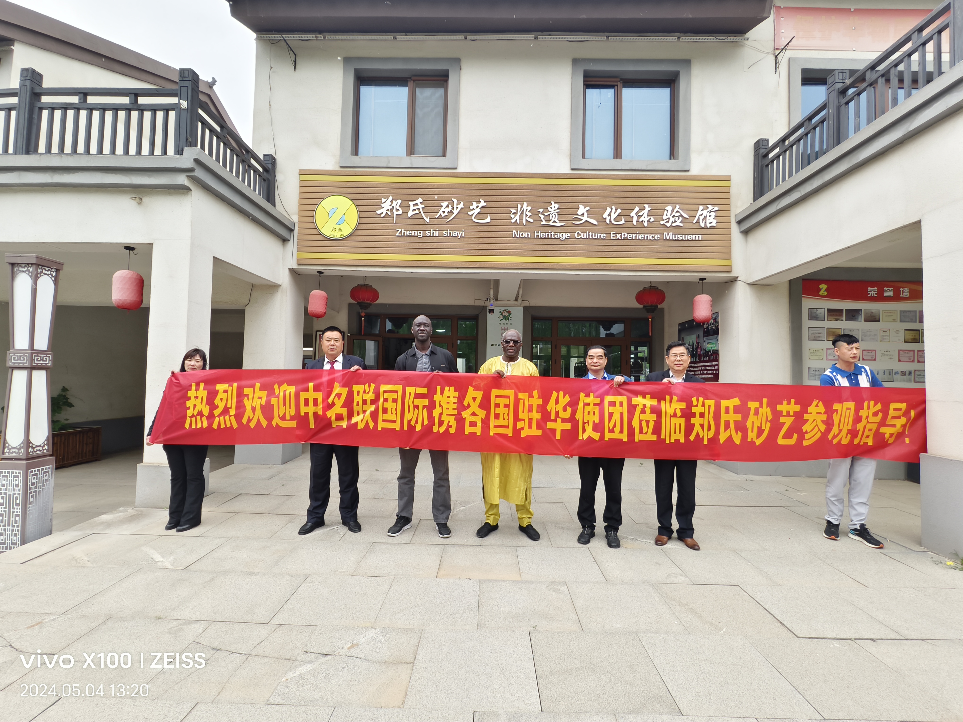 又是一年春暖花開時(shí),值此“五一”勞動(dòng)節(jié)之際,應(yīng)興隆縣鄭氏砂藝文化有限公司(以下簡(jiǎn)稱鄭氏砂藝)邀請(qǐng),由中名聯(lián)國際引薦,5月5日上午,科特迪瓦共和國駐華大使館國防武官阿達(dá)馬·科內(nèi)(空軍準(zhǔn)將)、塞內(nèi)加爾共和國駐中國大使館副官阿壩·瓦德上校蒞臨鄭氏砂藝進(jìn)行參觀考察。訪問人員在中名聯(lián)集團(tuán)董事長戴本領(lǐng)和趙蘋女士、邯鄲市華冶工貿(mào)有限公司黨委書記、董事長張書明、鄭氏砂藝董事長鄭鐵軍等人員的陪同下參觀了后苗圃“鄭氏砂藝”非遺展館和青松嶺水鎮(zhèn)“鄭氏砂藝”非遺博物館。此次參觀活動(dòng)不僅讓外國友人領(lǐng)略了“鄭氏砂藝”的深厚文化底蘊(yùn),也促進(jìn)了中外文化的民間交流與融合。