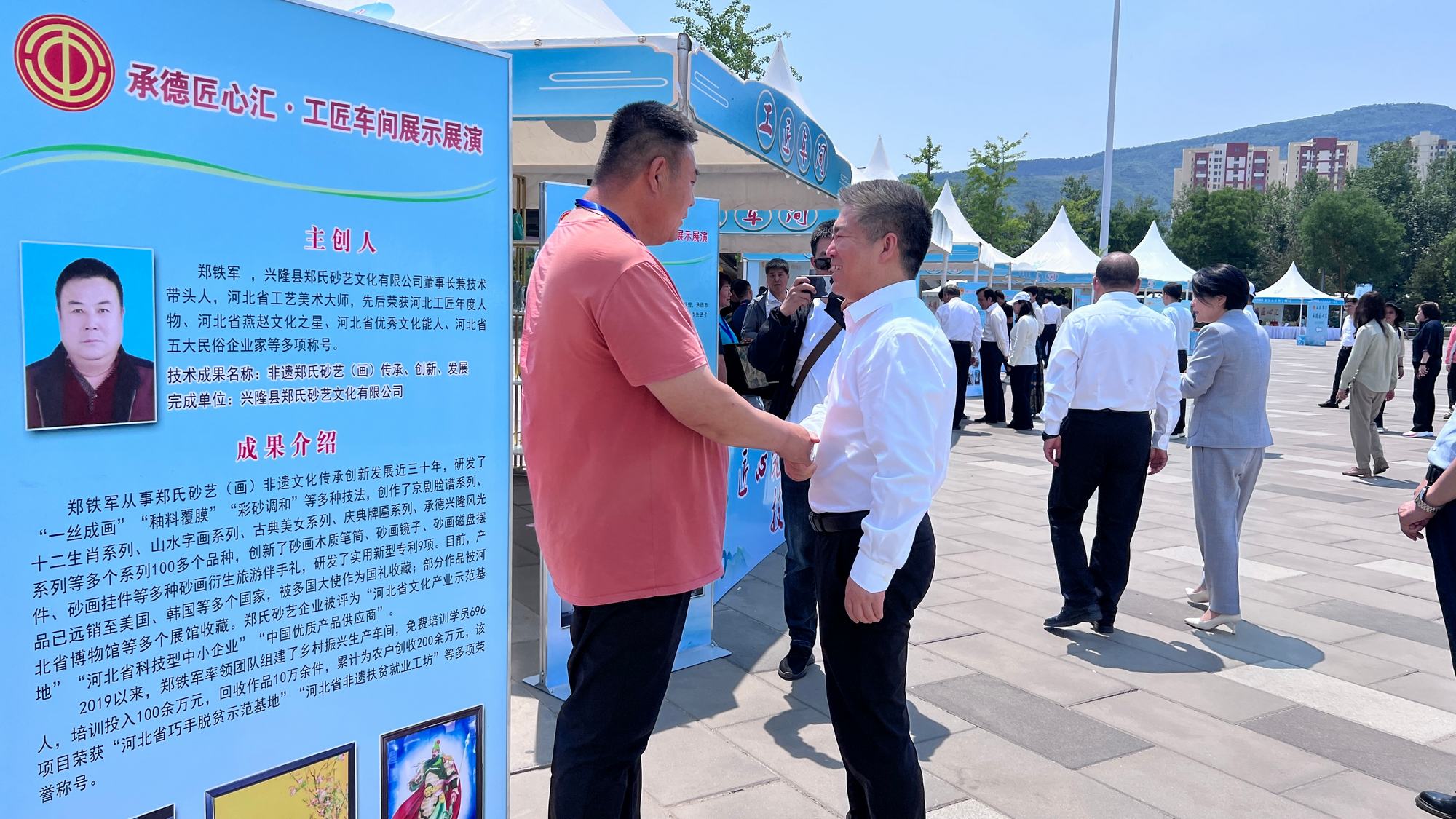 為向全國(guó)職工展示我省、我市工匠代表典型創(chuàng)新成果、精湛的操作技能,非遺傳承以及智慧文創(chuàng)的文化魅力,同時(shí)在奧體中心還舉辦了“承德匠心匯——工匠•市集”展示展演活動(dòng),鄭氏砂藝(畫)等二十余個(gè)承德非遺文化項(xiàng)目的勞模工匠代表匯聚一堂,向全國(guó)職工和當(dāng)?shù)厥忻裾故玖俗陨淼母叱妓?,展現(xiàn)了承德工匠們堅(jiān)守執(zhí)著、精益求精、專業(yè)專注、追求極致和一絲不茍的工匠精神。