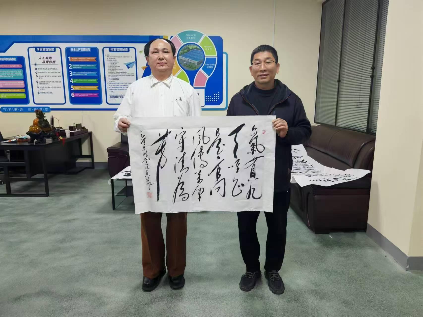 參觀結(jié)束后,趙士奎老師現(xiàn)場(chǎng)題寫了多幅書(shū)法作品贈(zèng)予樺維公司。隨后,趙老師與現(xiàn)場(chǎng)員工進(jìn)行了互動(dòng)環(huán)節(jié),他生動(dòng)形象地再現(xiàn)了偉人的風(fēng)范,并深刻宣講了偉人思想的崇高精神。趙老師期望這次傳統(tǒng)文化交流活動(dòng)能夠融入企業(yè)文化建設(shè)之中,能夠成為樺維企業(yè)文化建設(shè)的一部分,激勵(lì)員工在工作中不斷追求卓越,同時(shí)也為企業(yè)的整體環(huán)境增添文化氛圍。