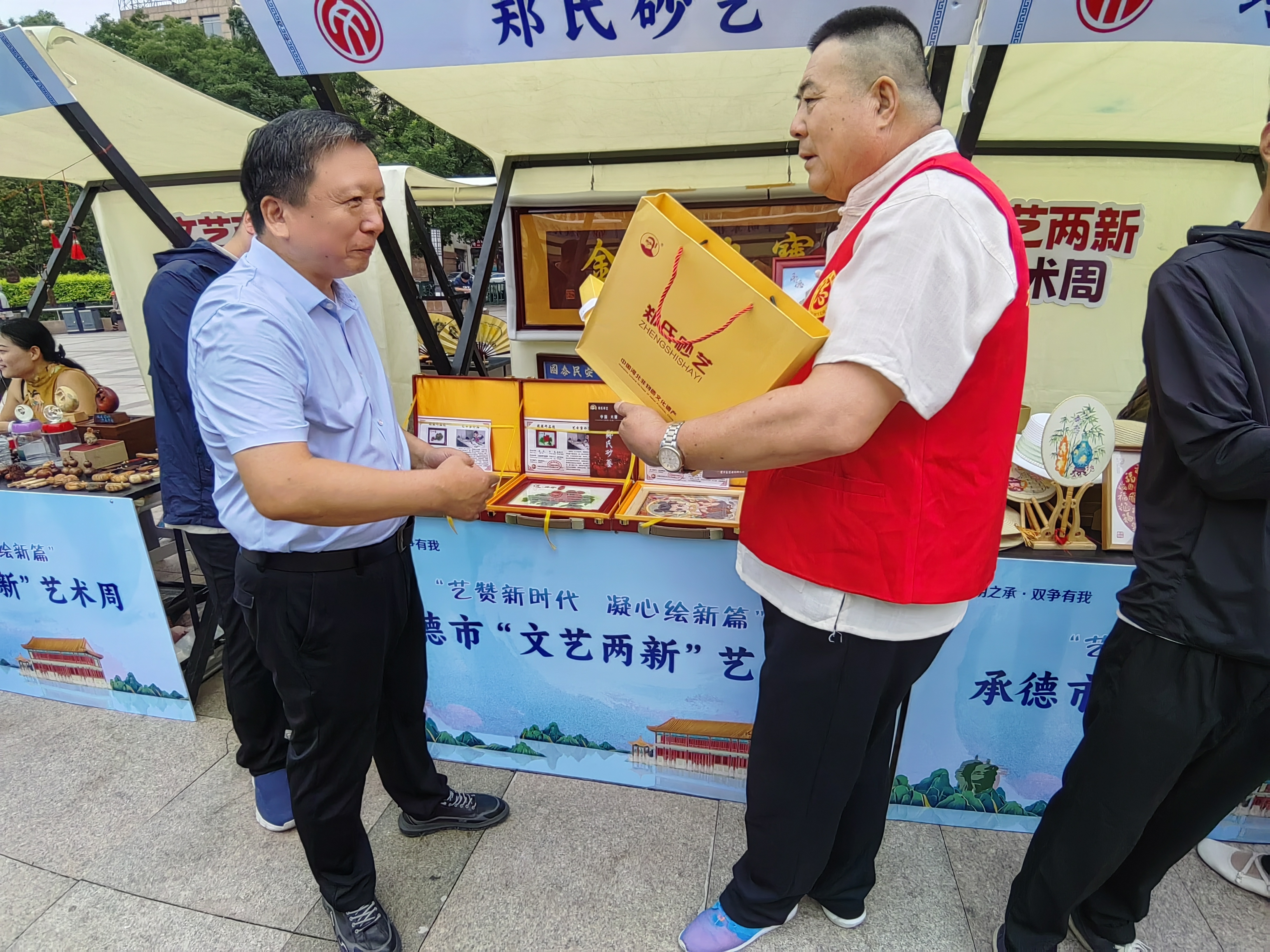 活動(dòng)中,承德民間手工藝品及文創(chuàng)產(chǎn)品展示吸引大量市民游客駐足,其中興隆縣非遺文化代表鄭氏砂藝展出的“興隆地域”“承德文脈”“生肖民俗”等系列作品尤為亮眼。作品以砂藝特有的細(xì)膩質(zhì)感,將興隆山水、興隆特產(chǎn)、承德山水與鄭氏砂藝非遺文化融合,既保留傳統(tǒng)工藝的厚重,又融入現(xiàn)代審美,充分彰顯承德地方特色,備受領(lǐng)導(dǎo)與群眾喜愛(ài)。此次展出不僅為興隆優(yōu)秀傳統(tǒng)文化提供了對(duì)外宣傳的窗口,更讓市民近距離感受到了興隆砂藝的獨(dú)特魅力。