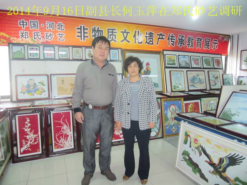 2014年9月16日,副縣長(zhǎng)何玉萍來(lái)到鄭氏砂藝公司就我縣文化產(chǎn)業(yè)發(fā)展進(jìn)行考察調(diào)研。何縣長(zhǎng)參觀了鄭氏砂藝研發(fā)室、展廳和公司企業(yè)文化墻,聽(tīng)取了公司總經(jīng)理鄭鐵軍的工作匯報(bào)。何縣長(zhǎng)對(duì)鄭氏砂藝近幾年來(lái)所取得的成績(jī)給予充分肯定,并希望鄭氏砂藝一定要瞄準(zhǔn)國(guó)內(nèi)外兩個(gè)市場(chǎng),抓住生產(chǎn)研發(fā)與市場(chǎng)銷售兩個(gè)主要環(huán)節(jié),搞好科技創(chuàng)新,千方百計(jì)提升產(chǎn)品質(zhì)量,帶動(dòng)我縣文化產(chǎn)業(yè)的繁榮發(fā)展。