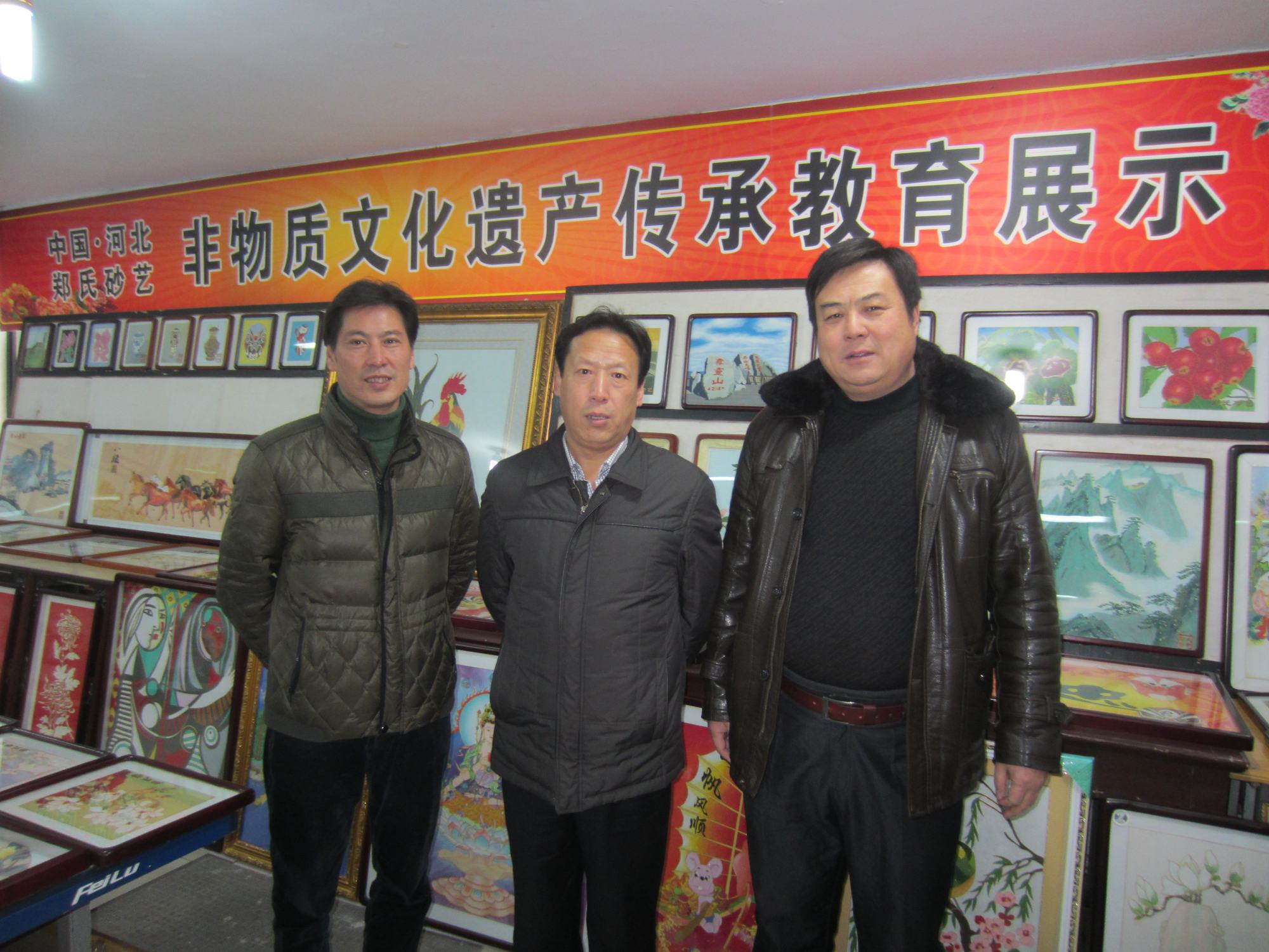 (中張東偉部長、左王俊杰副部長、右鄭鐵軍總經(jīng)理)2014年12月9日,新上任的縣委常委、宣傳部長張東偉在副部長王俊杰的陪同下來到鄭氏砂藝公司,就我縣文化產(chǎn)業(yè)發(fā)展情況進(jìn)行考察調(diào)研。張部長聽取了鄭鐵軍總經(jīng)理的工作匯報,參觀了鄭氏砂藝展廳。在詳細(xì)了解了鄭氏砂藝的歷史起源、工藝流程、工藝特色、產(chǎn)品創(chuàng)新種類、產(chǎn)品銷路和企業(yè)發(fā)展目標(biāo)等情況后強(qiáng)調(diào):鄭氏砂藝作為我縣最具特色的文化產(chǎn)業(yè),一定要抓住市場信息,不斷創(chuàng)新產(chǎn)品種類,提高產(chǎn)品質(zhì)量,加大對外聯(lián)系和外宣力度,要抓住和利用好國家大力發(fā)展文化產(chǎn)業(yè)的各項政策,把企業(yè)做好做大,使之成為興隆的一張名片。
