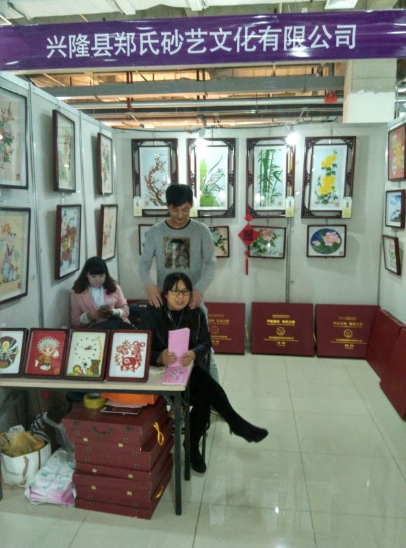 2015年10月16日--10月18日,興隆縣鄭氏砂藝文化有限公司參加了由河北省文化廳承辦的第四屆河北省特色文化產(chǎn)品博覽交易會,地點(diǎn):石家莊樂城.國際貿(mào)易城,公司的砂畫產(chǎn)品在展會上受到廣大顧客的青睞。