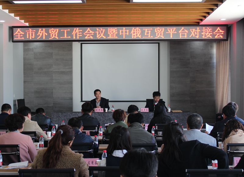 承德市進(jìn)出口商貿(mào)工作會議暨中俄互貿(mào)平臺對接會,4月21日上午在隆化縣“梵納瑞進(jìn)出口商貿(mào)有限公司”召開。本次會議由市商務(wù)局主辦,梵納瑞進(jìn)出口商貿(mào)公司承辦。各縣區(qū)商務(wù)局領(lǐng)導(dǎo)、鄭氏砂藝公司及市內(nèi)二十余家企業(yè)負(fù)責(zé)人參加了會議。
