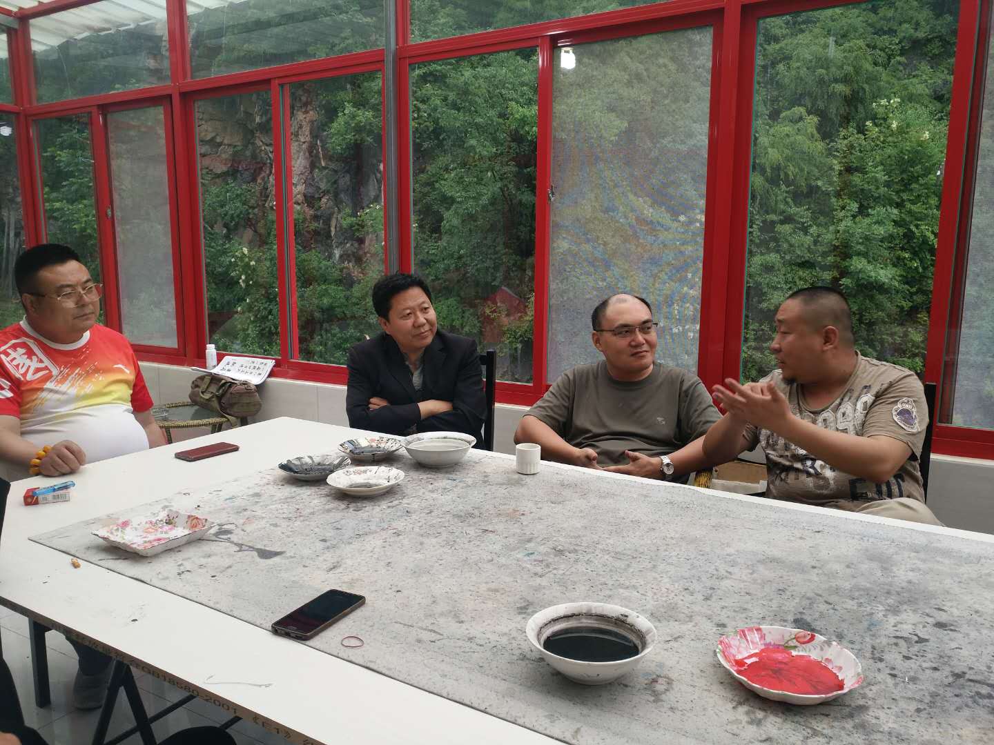 2018年6月17日,天津圣澤大通書畫院著名指畫名家王忠林、花鳥畫家尹寶華、書法家寧厚圃、書法家周征、山水畫家李學龍、書法家黃可鑫、花鳥畫家李旭等諸位老師應邀來興隆參加鄭氏砂藝工會委員會主辦的文化藝術交流活動。興隆縣鄭氏砂藝美術協(xié)會主席鄭鐵軍,興隆縣美術協(xié)會戴鐵松和韓鳳山全程參加了交流活動。
