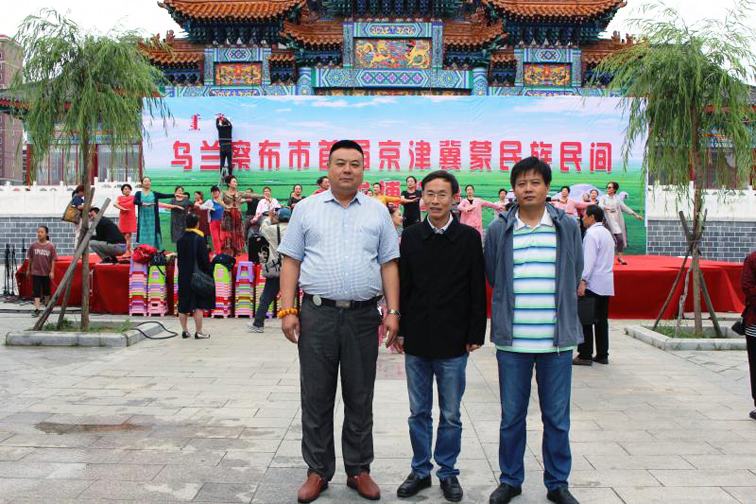 鄭總與河北省文聯(lián)組聯(lián)絡(luò)處處長(zhǎng)張占芳、河北省文聯(lián)機(jī)關(guān)黨委書記常立青在烏蘭察布市首屆京津冀蒙民族民間藝術(shù)博覽會(huì)展位前合影