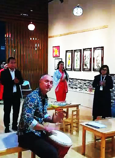 2018年10月28日,德國文學(xué)教授、非洲鼓音樂大師費(fèi)蘭特應(yīng)邀到訪石家莊冀臺聯(lián)青年文化創(chuàng)業(yè)園鄭氏砂藝非遺文化傳承教育基地。期間,費(fèi)蘭特現(xiàn)場表演非洲鼓。