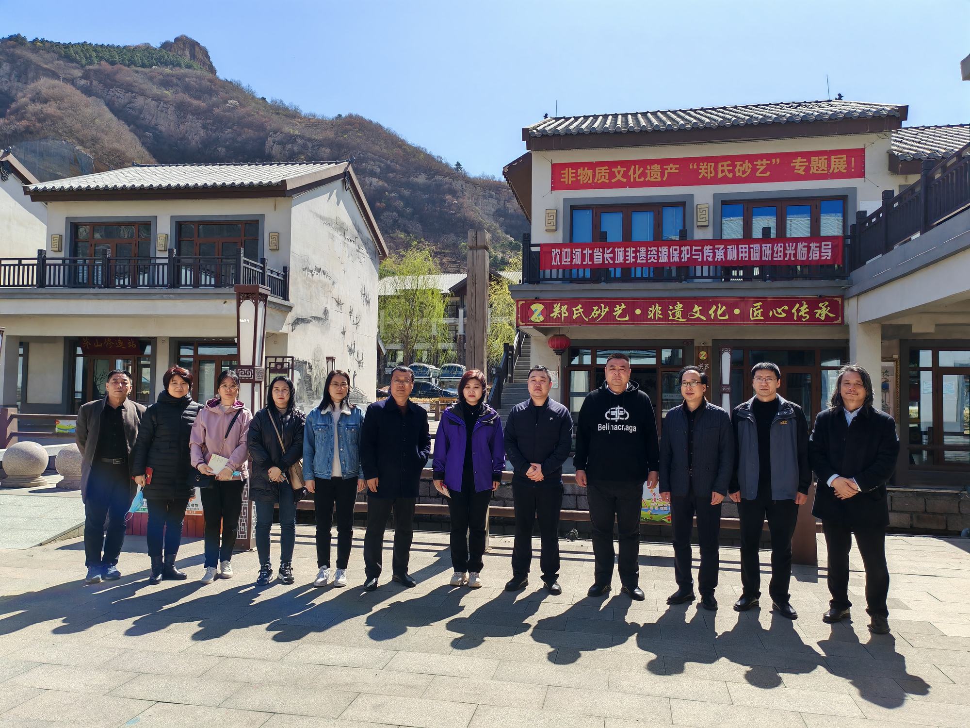 2023年4月8日上午,河北省文化和旅游廳非遺處四級主任科員集乾釗,省群眾藝術(shù)館(省非遺保護中心)專職副書記杜云生、省群眾藝術(shù)館(省非遺保護中心)非遺發(fā)展部主任趙麗蘋、省群眾藝術(shù)館(省非遺保護中心)非遺發(fā)展部干部王欣欣、河北地質(zhì)大學(xué)調(diào)研團隊、承德市和興隆縣等相關(guān)領(lǐng)導(dǎo)蒞臨鄭氏砂藝考察指導(dǎo),考察團來到位于興隆縣阿爾卡迪亞度假村的鄭氏砂藝非遺文化體驗展館現(xiàn)場,對非物質(zhì)文化遺產(chǎn)鄭氏砂藝的傳承和發(fā)展情況進(jìn)行了調(diào)研工作。