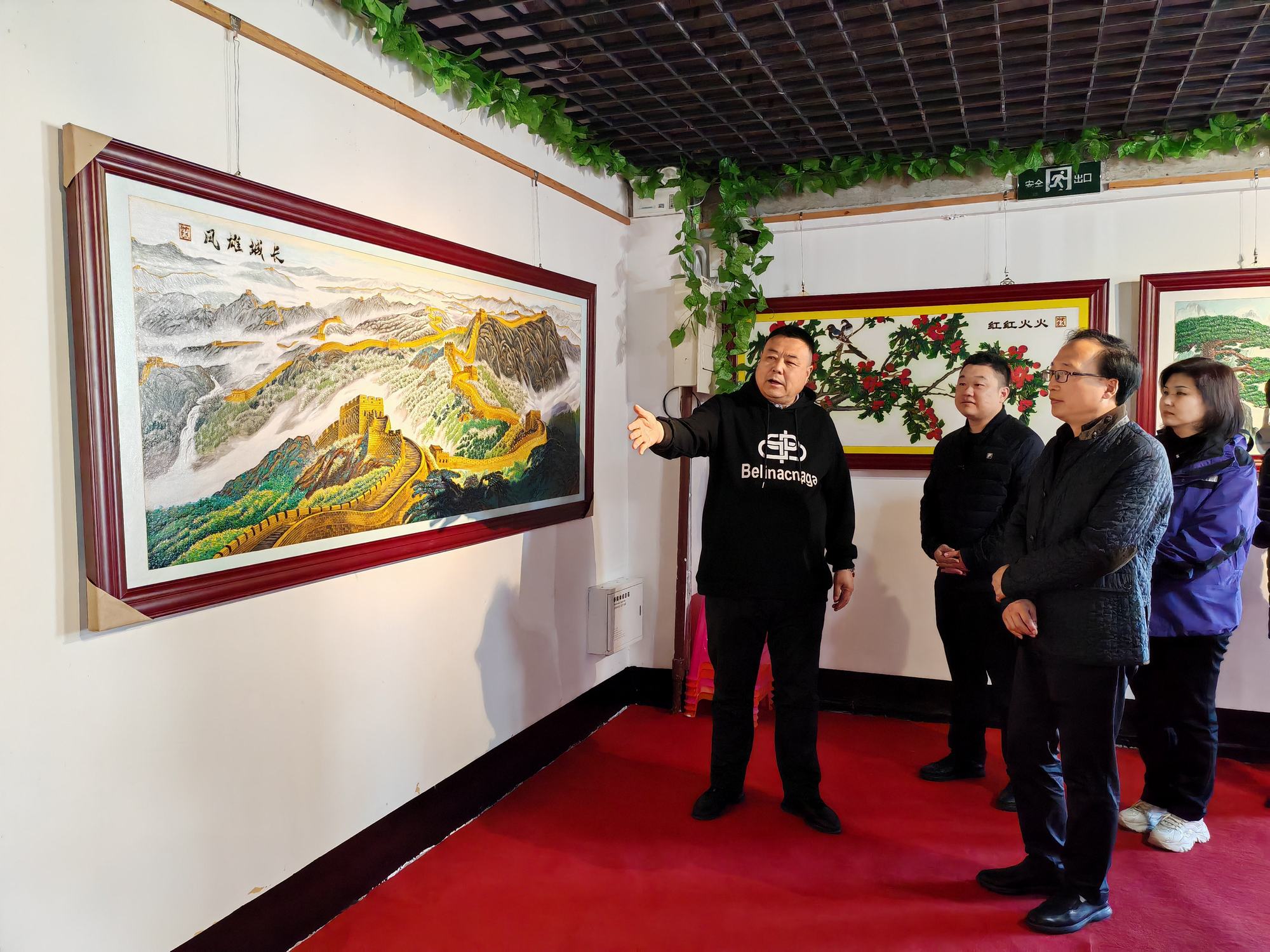 集乾釗主任一行在鄭鐵軍董事長的陪同下參觀了鄭氏砂藝非遺展館,觀看了鄭氏砂藝創(chuàng)作的各類非遺砂畫作品,考察團領(lǐng)導(dǎo)在長城砂畫系列前駐足欣賞,對栩栩如生的長城砂畫作品給予了高度贊譽。期間董事長鄭鐵軍對近年來鄭氏砂藝非遺文化的發(fā)展情況進(jìn)行了簡單介紹。集乾釗主任對鄭氏砂藝非遺文化的傳承和發(fā)展表示了充分肯定,并對鄭氏砂藝的傳統(tǒng)手工技藝給予高度評價。