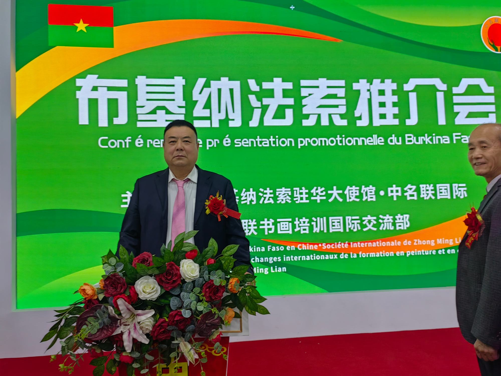 2023年4月12日,興隆縣鄭氏砂藝文化有限公司執(zhí)行董事長鄭鐵軍參加由布基納法索駐華大使館.中名聯(lián)書畫培訓(xùn)國際交流部主辦的“布基納法索國家推介會(huì)”和“中名聯(lián)191期經(jīng)濟(jì)與藝術(shù)交流會(huì)”。會(huì)上,布基納法索共和國駐華大使團(tuán)、商務(wù)代表團(tuán)一行對鄭鐵軍的砂畫作品高度贊賞,并現(xiàn)場簽訂了訂購協(xié)議,頒發(fā)了收藏證書,授予鄭鐵軍“中非文化交流使者”榮譽(yù)稱號。