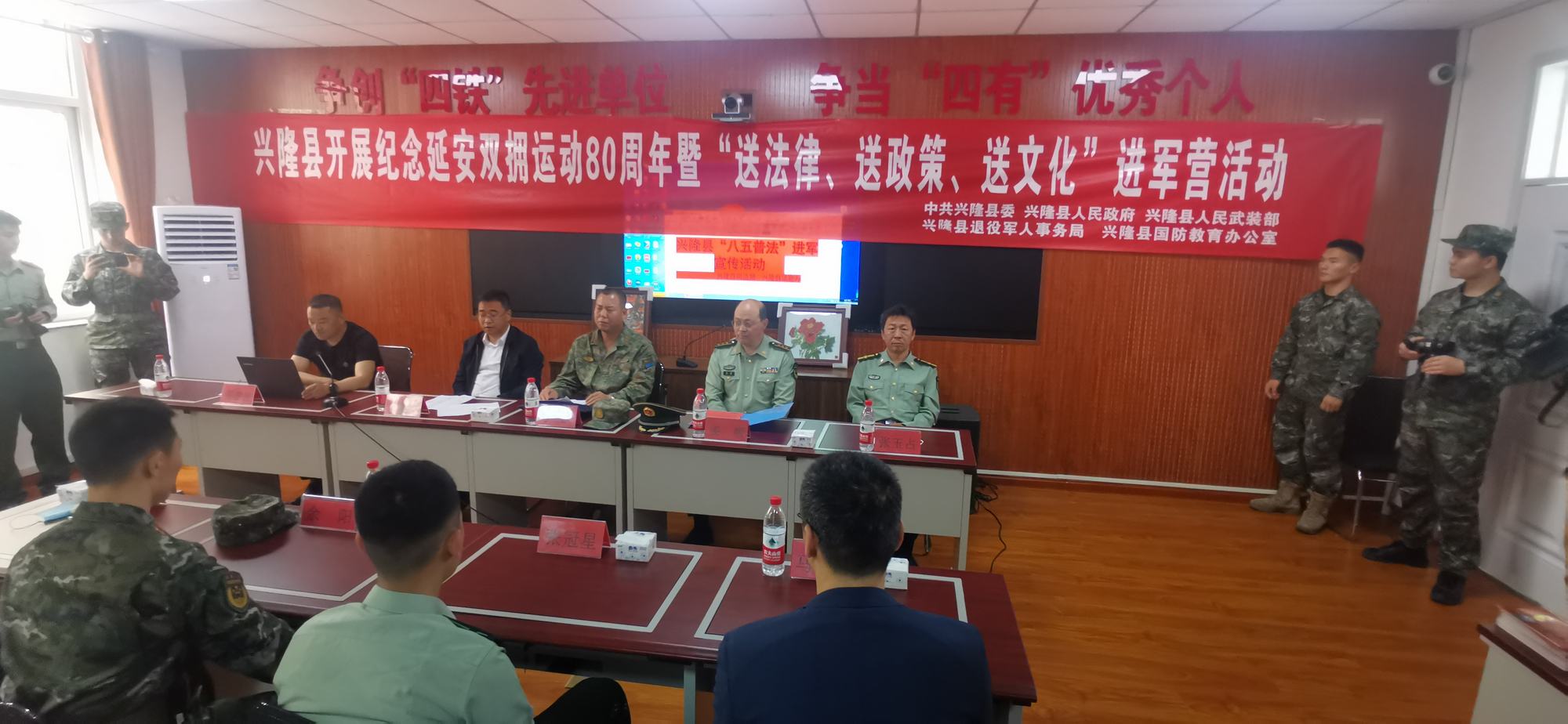 2023年5月17日,為紀念毛澤東老一輩無產(chǎn)階級革命家倡導的延安雙擁運動80周年,為進一步做好新形勢下雙擁工作,完善退役軍人榮譽體系,豐富官兵文化生活,鞏固堅如磐石的軍政軍民團結(jié),興隆縣在武警承德支隊執(zhí)勤2大隊興隆中隊,隆重舉行“送法律、送政策、送文化”進軍營活動。
