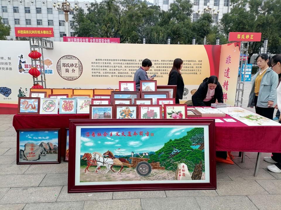 在展覽現(xiàn)場(chǎng),鄭氏砂藝展區(qū)人頭攢動(dòng),熱鬧非凡。一系列精心創(chuàng)作的砂藝藝術(shù)品,如《國(guó)泰民安》《沿著社會(huì)主義大道奔前方》《興隆山》《霧靈山》《天文臺(tái)》及《紅紅火火》等,吸引了眾多觀眾的目光。這些作品不僅展現(xiàn)了鄭氏砂藝精湛的制作工藝和獨(dú)特的藝術(shù)風(fēng)格,更蘊(yùn)含了對(duì)祖國(guó)繁榮昌盛、人民幸福安康的美好祝愿。鄭氏砂藝的展品憑借其獨(dú)特的藝術(shù)魅力和深刻的主題內(nèi)涵,贏得了廣大父老鄉(xiāng)親的喜愛和贊賞。觀眾們紛紛駐足觀賞,拍照留念,更有不少人表示被這些作品深深打動(dòng),感受到了濃厚的愛國(guó)情懷和藝術(shù)氛圍。