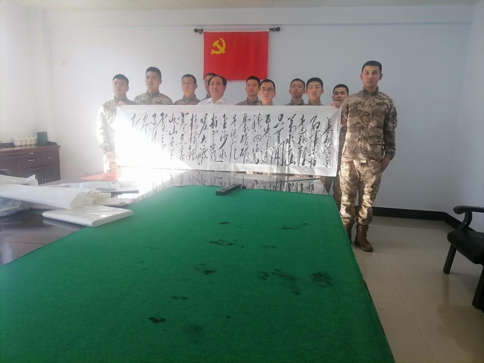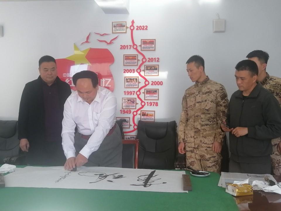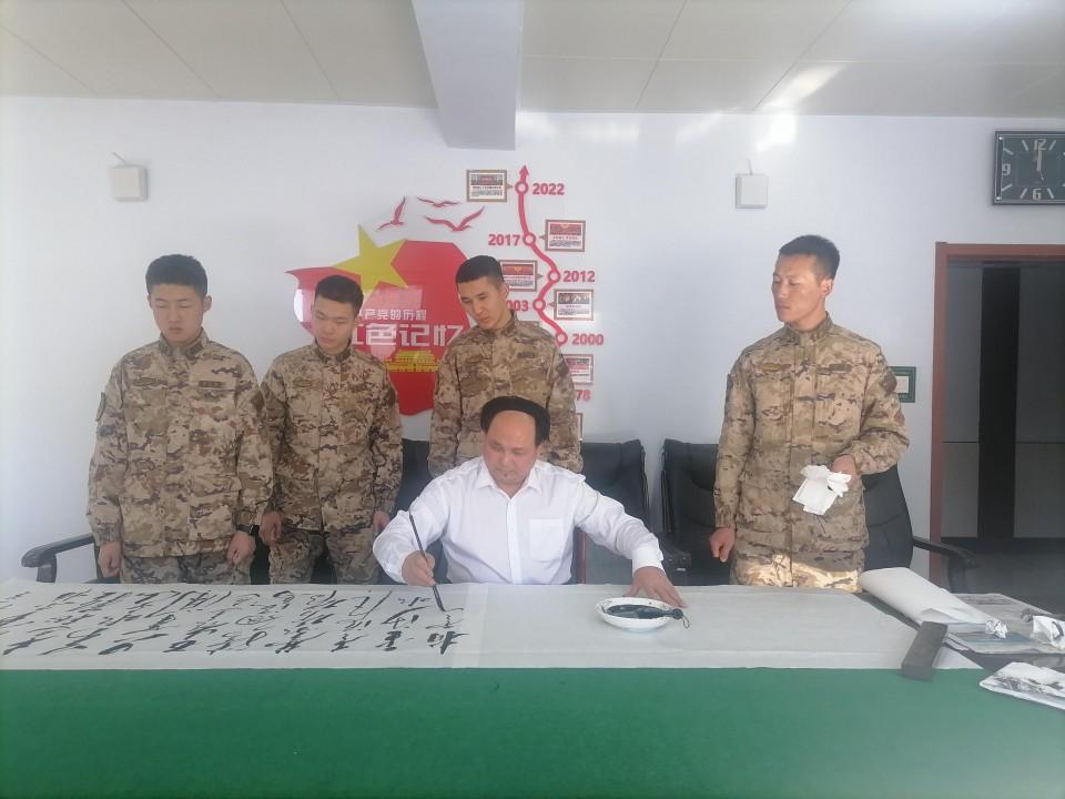 在此次活動(dòng)中,特型扮演者趙士奎老師為承德支隊(duì)官兵題寫了充滿激情的詩詞《長征》及“軍魂”等書法作品,展現(xiàn)了其精湛的書法技藝和對傳統(tǒng)文化的深刻理解,贏得了官兵們的敬意。