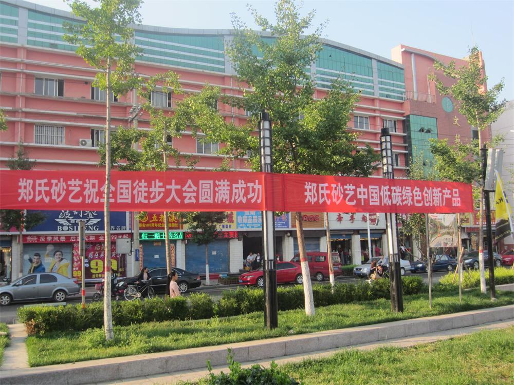 2014年9月5日,2014中國(guó)興隆霧靈山全國(guó)徒步大會(huì)在興隆縣城中心廣場(chǎng)舉行開幕儀式。國(guó)家體育總局領(lǐng)導(dǎo)、承德市韓副市長(zhǎng)、市體育局局長(zhǎng)、興隆縣委書記、紀(jì)委書記、縣長(zhǎng)、人大主任、宣傳部長(zhǎng)等領(lǐng)導(dǎo)出席開幕儀式。來自全國(guó)各地的200多名徒步愛好者和包括人民日?qǐng)?bào)等20多家新聞媒體參加了開幕儀式。鄭氏砂藝作為徒步大會(huì)的指定產(chǎn)品,組織全體員工在廣場(chǎng)進(jìn)行了產(chǎn)品展示和宣傳活動(dòng),懸掛橫幅5副,展示作品近百件,有力配合了徒步大會(huì)的舉行,也再一次提高了鄭氏砂藝的社會(huì)知名度。